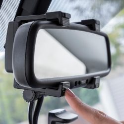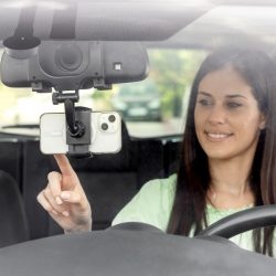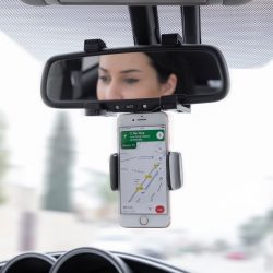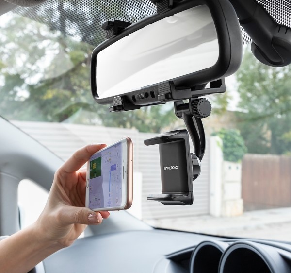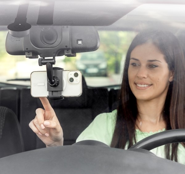 Držač pametnog telefona za retrovizor s omogućava postavljanje mobitela u optimalan položaj u automobilu za pravilno gledanje tijekom vožnje po cesti.