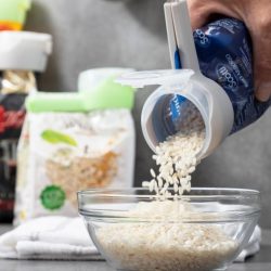 Ove kopče za brtvljenje vrećica s dozatorom za hranu lako se stavljaju. Dovoljno je staviti kopču na gornji dio vrećice (gdje je otvorena) i, za zatvaranje vrećice, zatvoriti kopču pritiskom na oba kraja. Za sipanje sadržaja, samo treba otvoriti ugrađeni poklopac za doziranje i ponovno ga zatvoriti.
