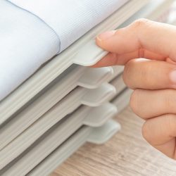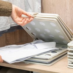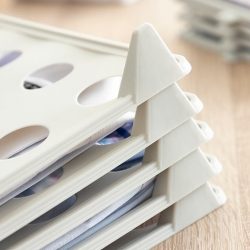 Set vrlo praktičnih ladica za organiziranje odjeće za držanje uredno presavijene i složene odjeće u ormarima, ladicama, kovčezima itd. Omogućavaju pregled odjeće i imaju ručicu za hvat za lako podizanje i vađenje odabranog odjevnog predmeta. Jednostavan način optimizacije prostora, izbjegavanja nabora ili nereda te bržeg i ugodnijeg pristupa odjeći. Zbog svog prijenosnog i složivog dizajna, zauzimaju malo prostora i idealne su za košulje, majice, polo majice itd.