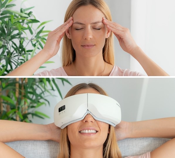 Višenamjenski masažer za oči 4 u 1 koji pruža opuštajuću i obnavljajuću masažu, potiče odmor i pomaže utonuti u san.